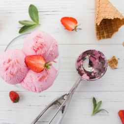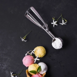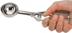 Žlica promjera 5,5 cm i mehanizam s izbacivačem stvaraju savršeno pravilne porcije sladoleda i pirea.