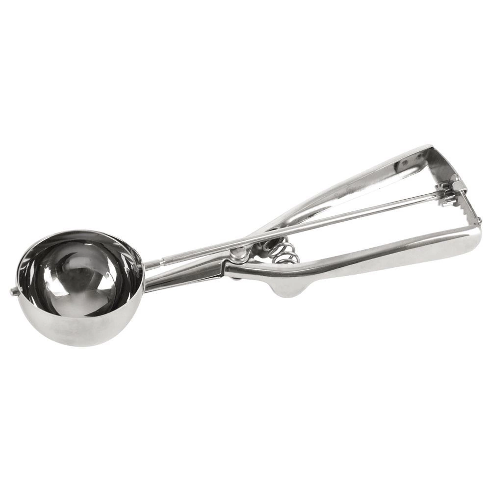 Ova robusna nehrđajuća žlica za sladoled duljine 22,5 cm i žlicom promjera 5,5 cm olakšava porcioniranje i osigurava uvijek jednake i glatke kuglice. Automatski izbacivač nježno otpušta porciju iz žlice, pa je posluživanje brzo i čisto.