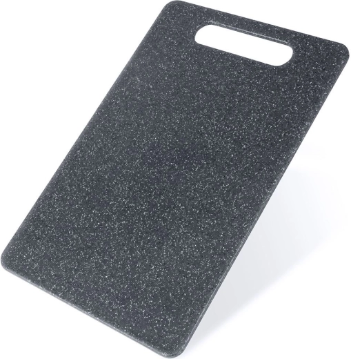 Svestrana daska za rezanje u elegantnoj sivoj boji koja imitira granit postat će pouzdan pomoćnik u svakoj kuhinji. Zahvaljujući kvalitetnoj plastici lagana je, izdržljiva i lako se čisti, a istovremeno pruža stabilnu površinu za rezanje peciva, povrća i mesa.