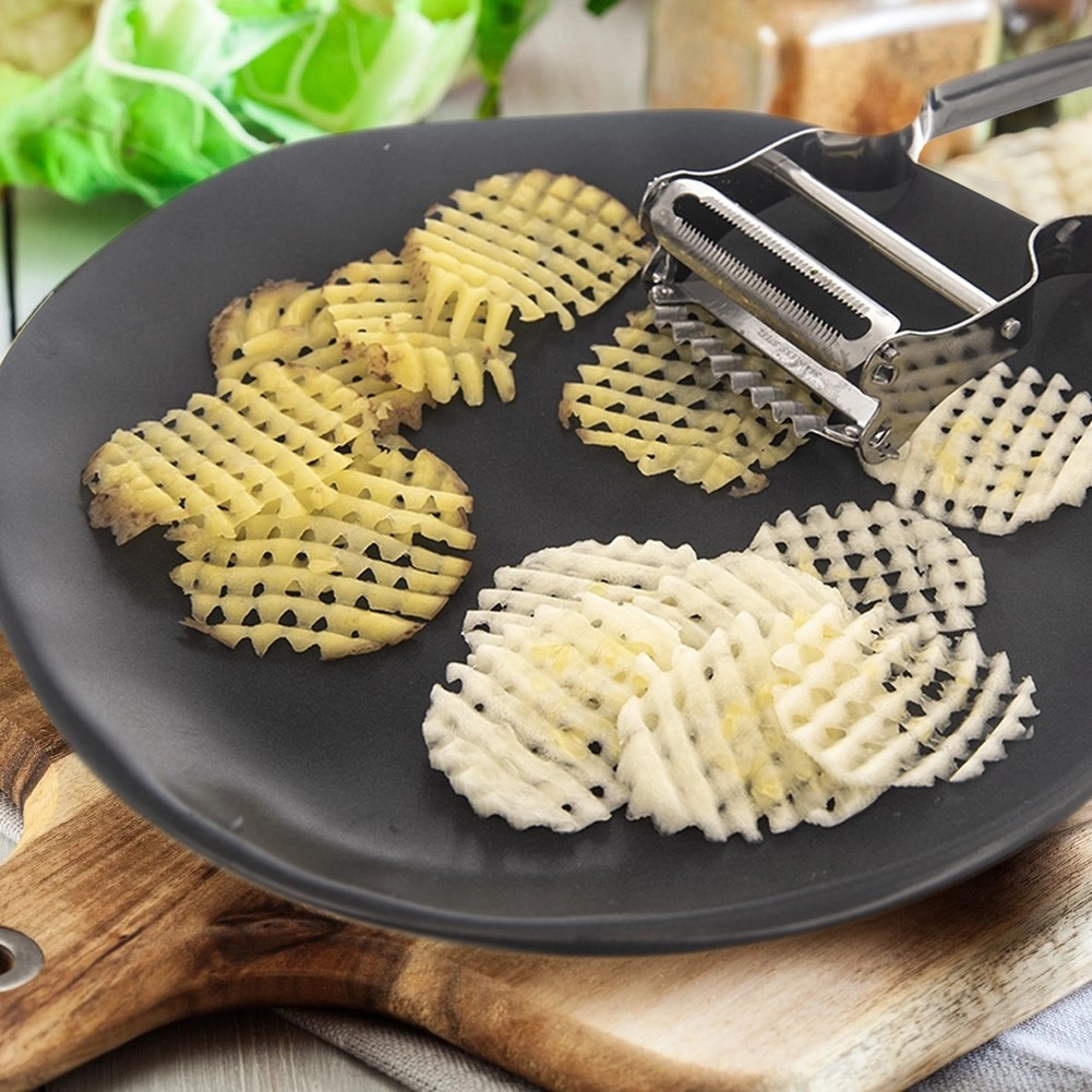 Stvarajte ujednačene ploške i mrežaste “waffle” rezove za atraktivno posluživanje i dodatnu hrskavost pri pečenju.