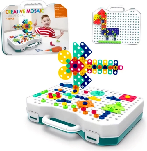 Zahvaljujući raznim dijelovima – kvadratima, trokutima, pravokutnicima i krugovima – djeca uvježbavaju koordinaciju oko–ruka, uče prepoznavati boje i oblike te razvijaju svoju kreativnost.