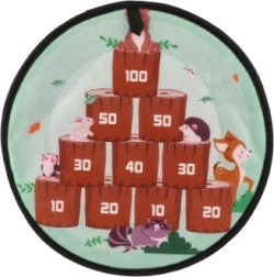 Dvosmjerni meta s čičak trakom je dizajniran kako bi donio zabavu i učenje u dječju igru. Jedna strana mete je puna živih boja i brojeva; idealna za natjecanja u bacanju i poboljšavanje računskih sposobnosti. Druga strana nudi šumsku temu sa životinjama, što dodaje zabavan narativni element.