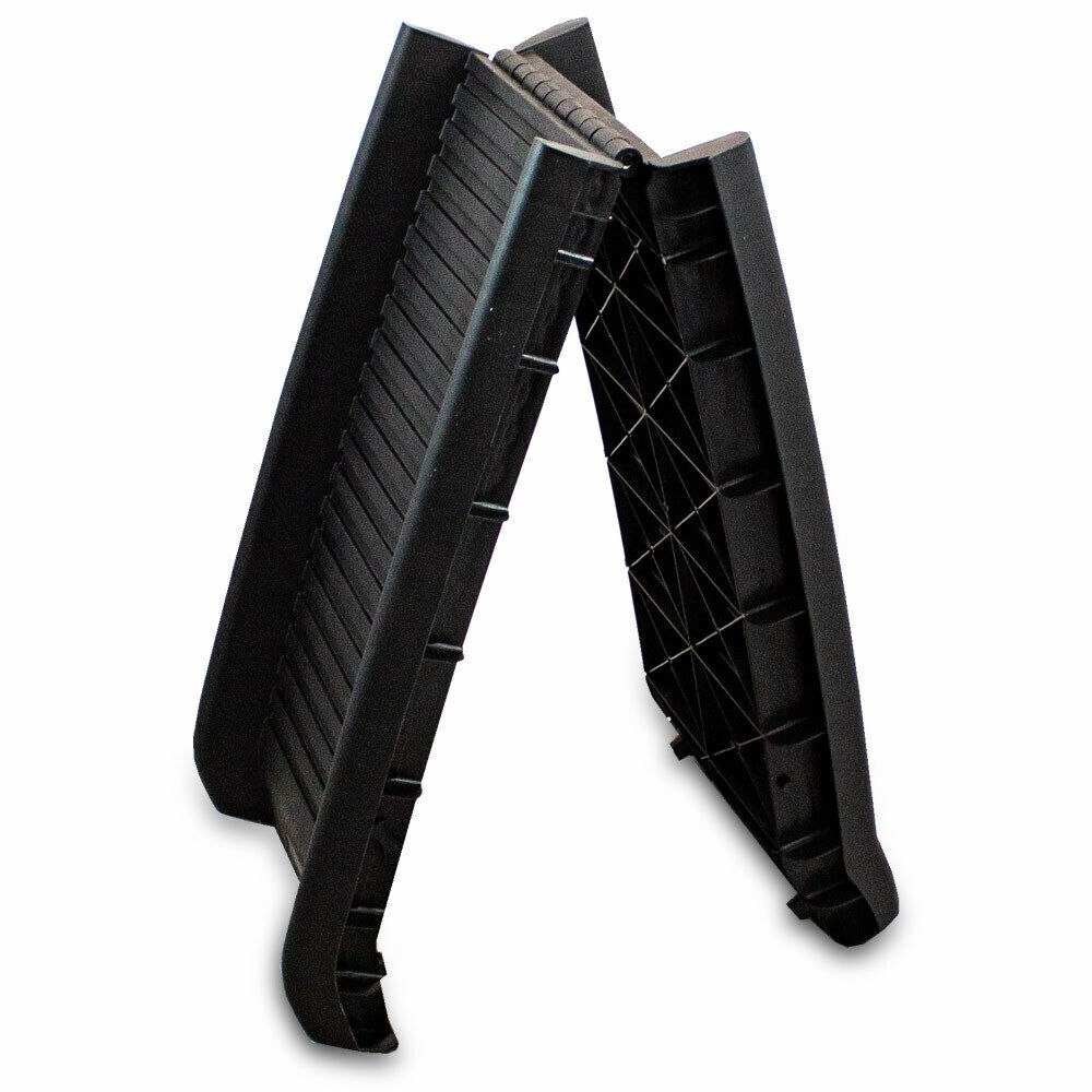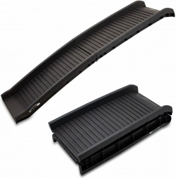 Rampa teži samo 5 kg, lako se prenosi i zahvaljujući središnjem zglobu brzo se sklapa u kompaktan oblik.
