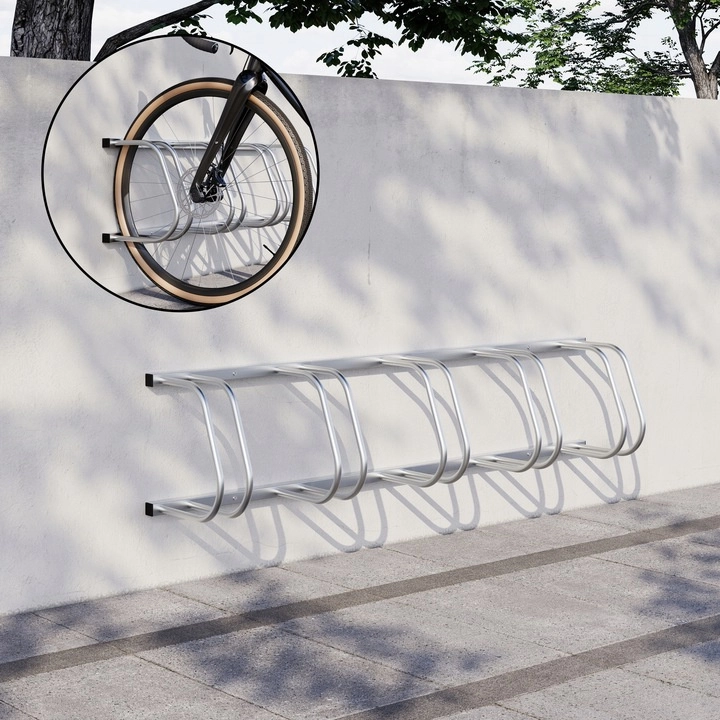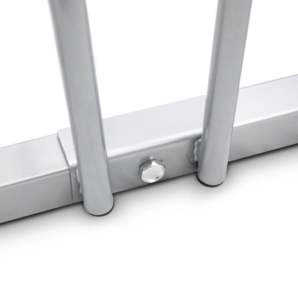 Galvanska površinska obrada štiti stalak od kiše, vlage i korozije. Idealan za garaže, dvorišta i javne prostore.