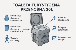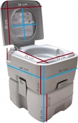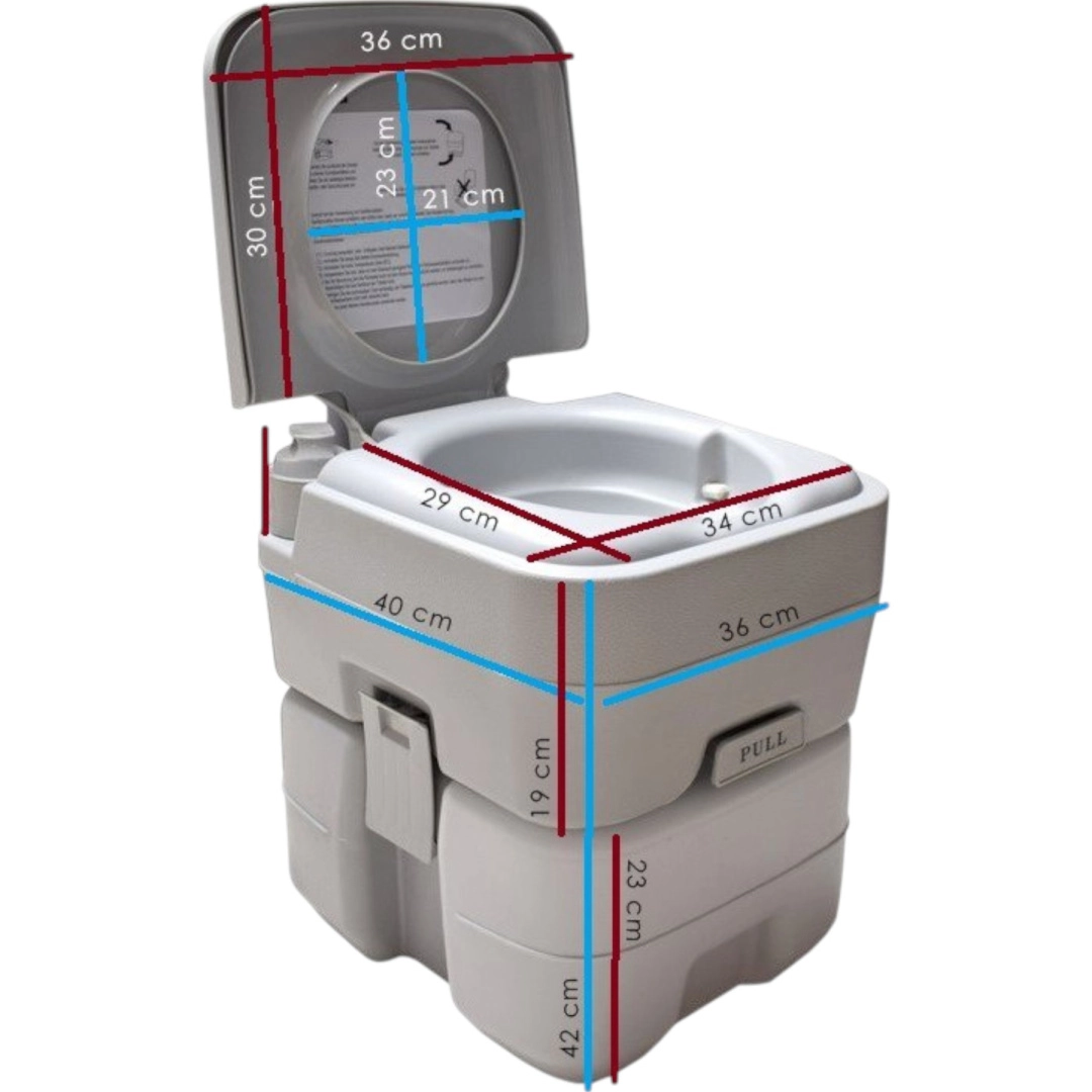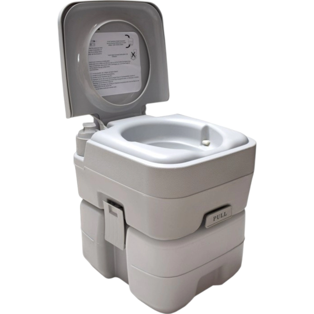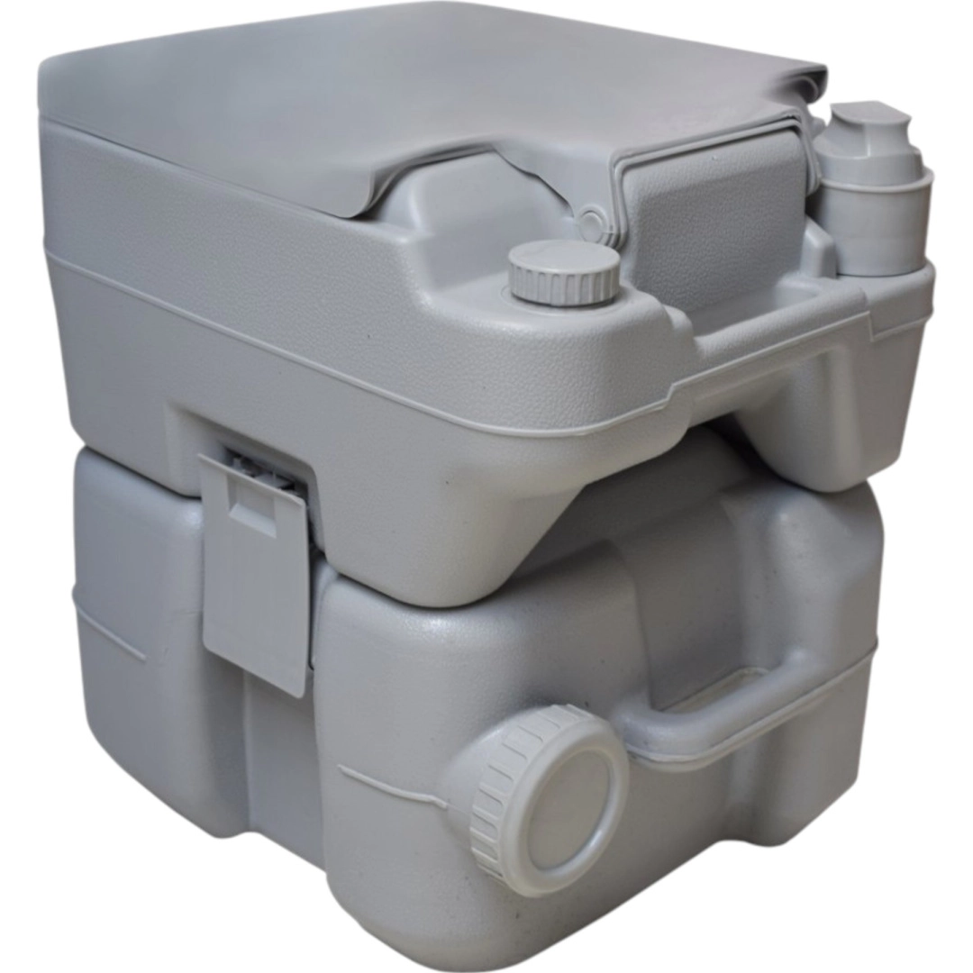 Uživajte u slobodi putovanja bez kompromisa. Prijenosni WC sa spremnikom svježe vode 10 l i spremnikom za otpad 20 l nudi udobnost kućnog WC-a i tamo gdje nema infrastrukture. Stabilno dvodijelno rješenje spaja se pomoću bočnih kopči, ne propušta i lako se prenosi. Idealno za kampiranje, karavan, brod, vrt, gradilište ili vikendicu.