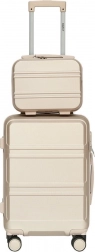 Ovaj elegantan putni set u boji šampanj idealan je za vikend izlete i poslovna putovanja. Tvrda školjkasta površina od ABS-a štiti sadržaj od udaraca i ogrebotina, dok lagana konstrukcija s teleskopskom ručkom i 4 dvostruka kotača 360° osigurava glatko i tiho kretanje.