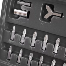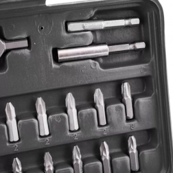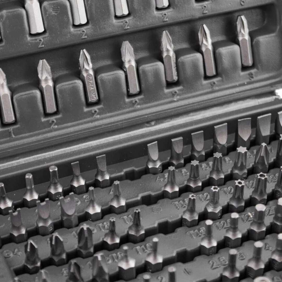Čvrsto plastično kućište drži svaki bit na svom mjestu, pa uvijek imate red i brz pristup. Zahvaljujući kompaktnim dimenzijama set je idealan za radionicu, automobil i putovanja.
