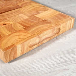 Ova masivna daska za rezanje od kaučukovog drva nudi iznimnu izdržljivost, dugi vijek trajanja i prirodnu ljepotu drva. Konstrukcija s završnim rezom vlakana minimalizira trošenje oštrica i pomaže održati dasku bez dubokih ogrebotina. Idealna je za svakodnevno rezanje mesa, povrća i voća, a jednako dobro služi i kao stilska podloga za posluživanje.