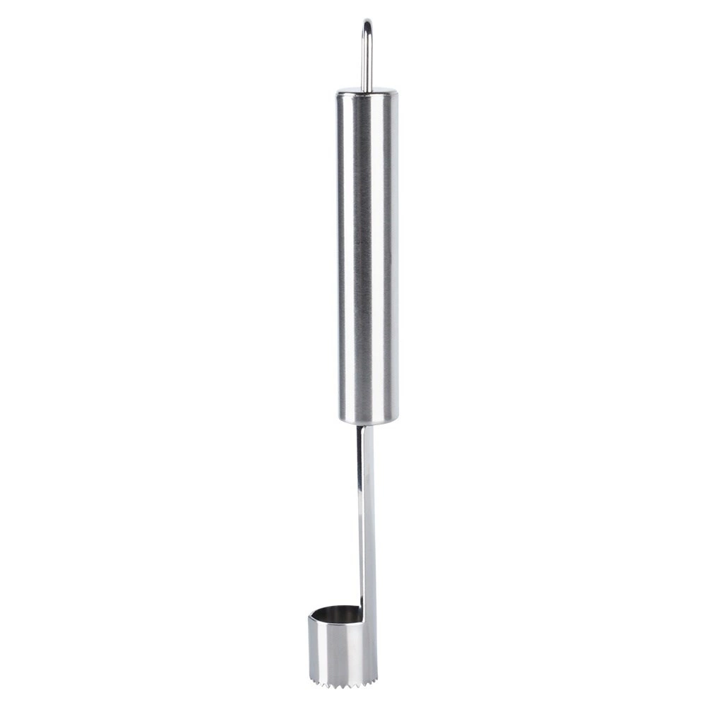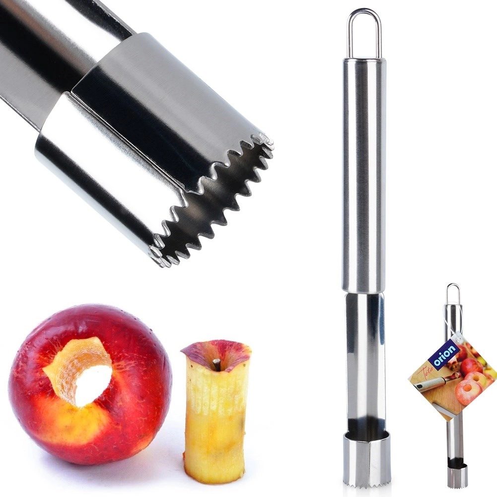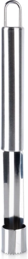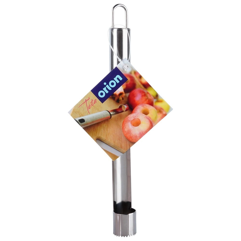 Ovaj nehrđajući odstranjivač jezgre idealan je pomoćnik za svakodnevne kuhinjske poslove. Jednim umetanje i okretanjem nazubljene krune brzo ćete ukloniti jezgre iz jabuka i krušaka, pripremiti voće za punjenje ili ukrašavanje te ubrzati pripremu štrudla, pita i deserata. Cjelometalna konstrukcija je higijenska, izdržljiva i sigurna za kontakt s hranom.