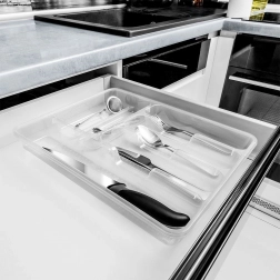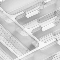 Organizirajte ladicu pregledno i bez napora. Prozirni umetak za pribor učinkovito će podijeliti prostor i omogućiti da sve bude pri ruci. Kvalitetan materijal osigurava dug vijek trajanja i čist izgled u svakodnevnom radu.