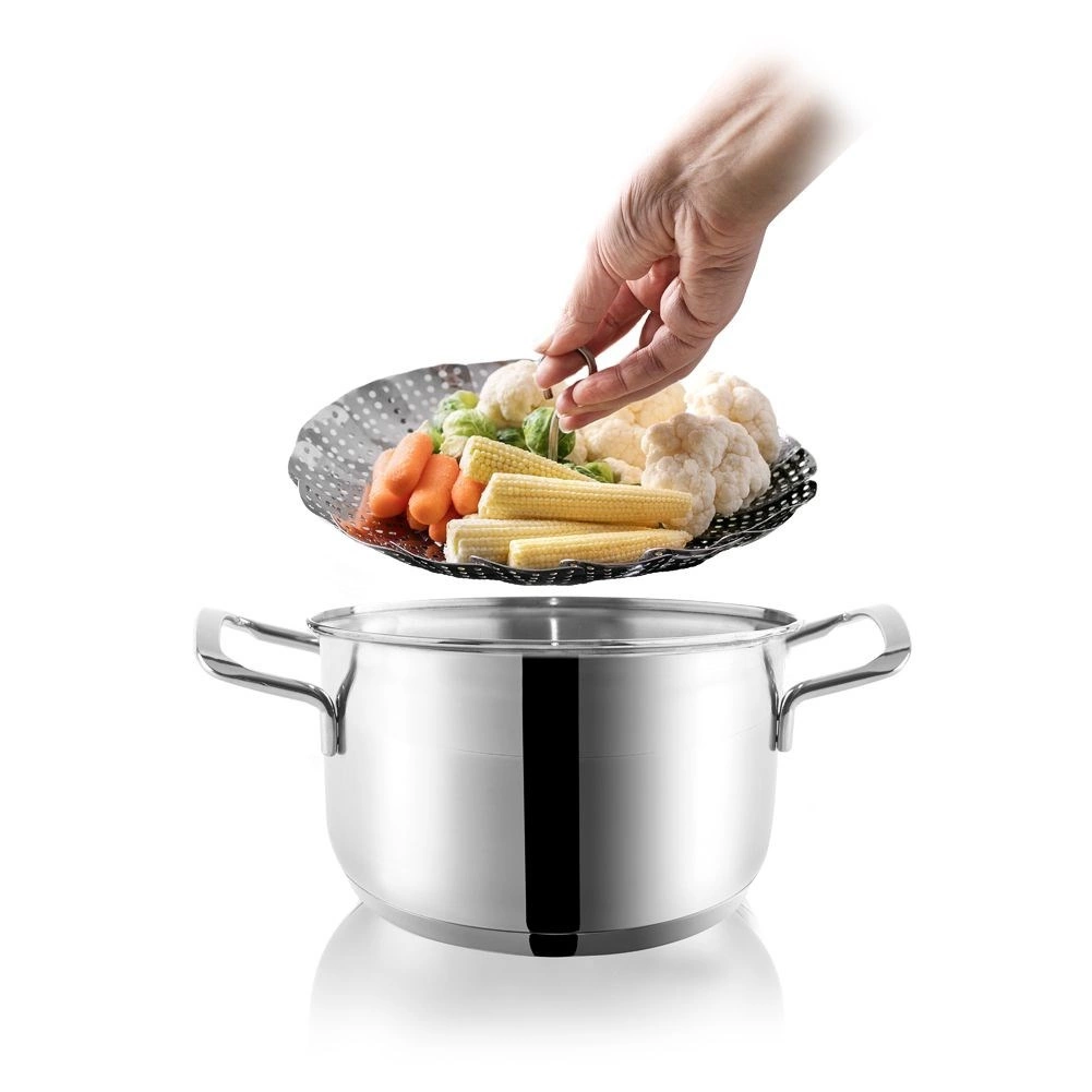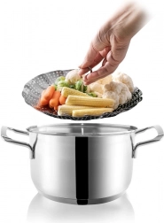Sklopiva košarica od kvalitetnog nehrđajućeg čelika omogućuje nježno kuhanje na pari pri kojem namirnice zadržavaju okus, boju i hranjive tvari. Podesiv promjer 14–23 cm osigurava kompatibilnost s loncima raznih veličina, pa možete pripremiti sve od povrća preko ribe do knedli.