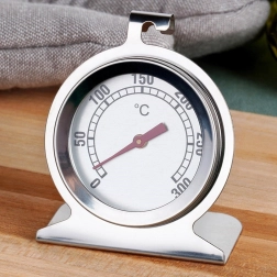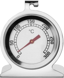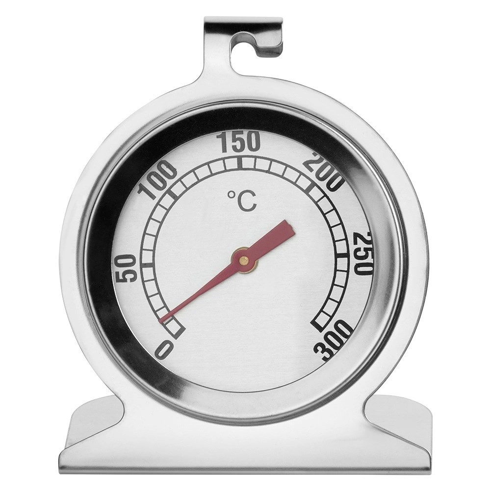 Pouzdan termometar za pećnicu i dimilicu od nehrđajućeg čelika za precizno praćenje temperature pri pečenju i dimljenju. Nudi širok raspon 0–300 °C, čitljivu skalu po 10 °C, stabilnu bazu i praktičnu kukicu za vješanje. Izdržljiva izvedba od nehrđajućeg čelika i staklo otporno na visoke temperature sigurna je za kontakt s hranom i lako se čisti.