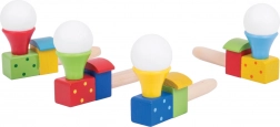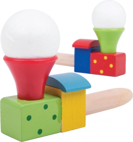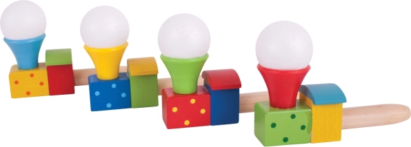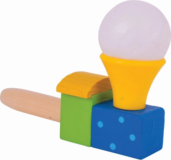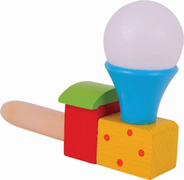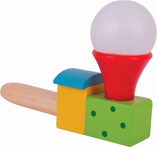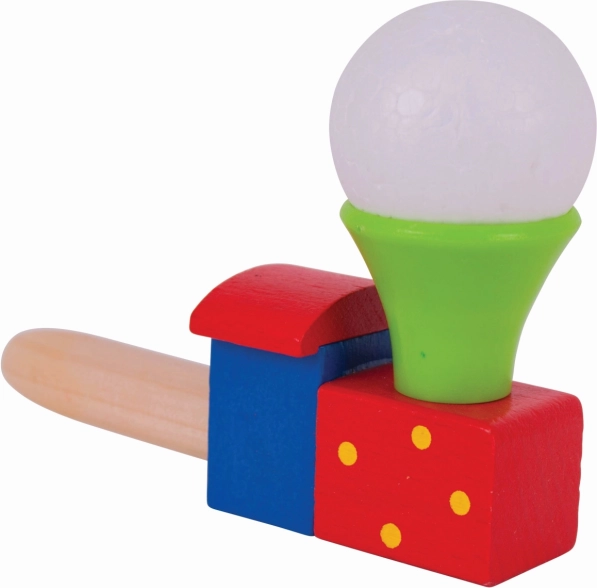 Ova šarena drvena lokomotiva s balonom pretvara obično puhanje u mali čarobni trenutak. Djeca vježbaju disanje i kontrolu daha, promatraju kako se bijela loptica diže iznad dimnjaka te tako razvijaju koordinaciju i strpljenje. Idealno za kratke razigrane pauze i dulju usredotočenu zabavu.