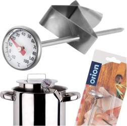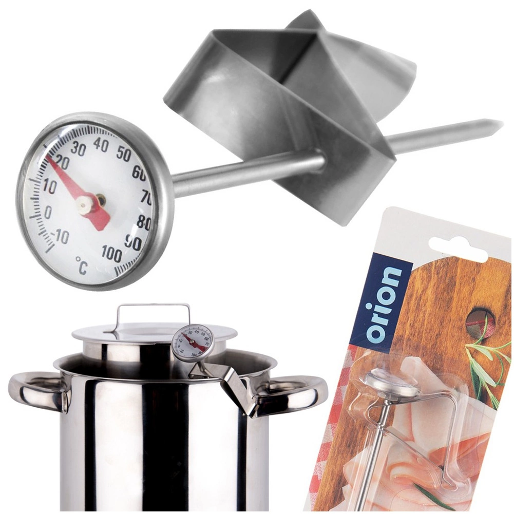 Ovaj izdržljivi inox termometar idealan je za svakodnevno kuhanje, pečenje, prženje i pripremu napitaka. Metalna sonda brzo očitava temperaturu, a veliki analogni brojčanik omogućuje jednostavno i brzo čitanje. Zahvaljujući praktičnom klipsu termometar sigurno pričvrstite na rub posude – imate stabilno i precizno mjerenje bez držanja u ruci.