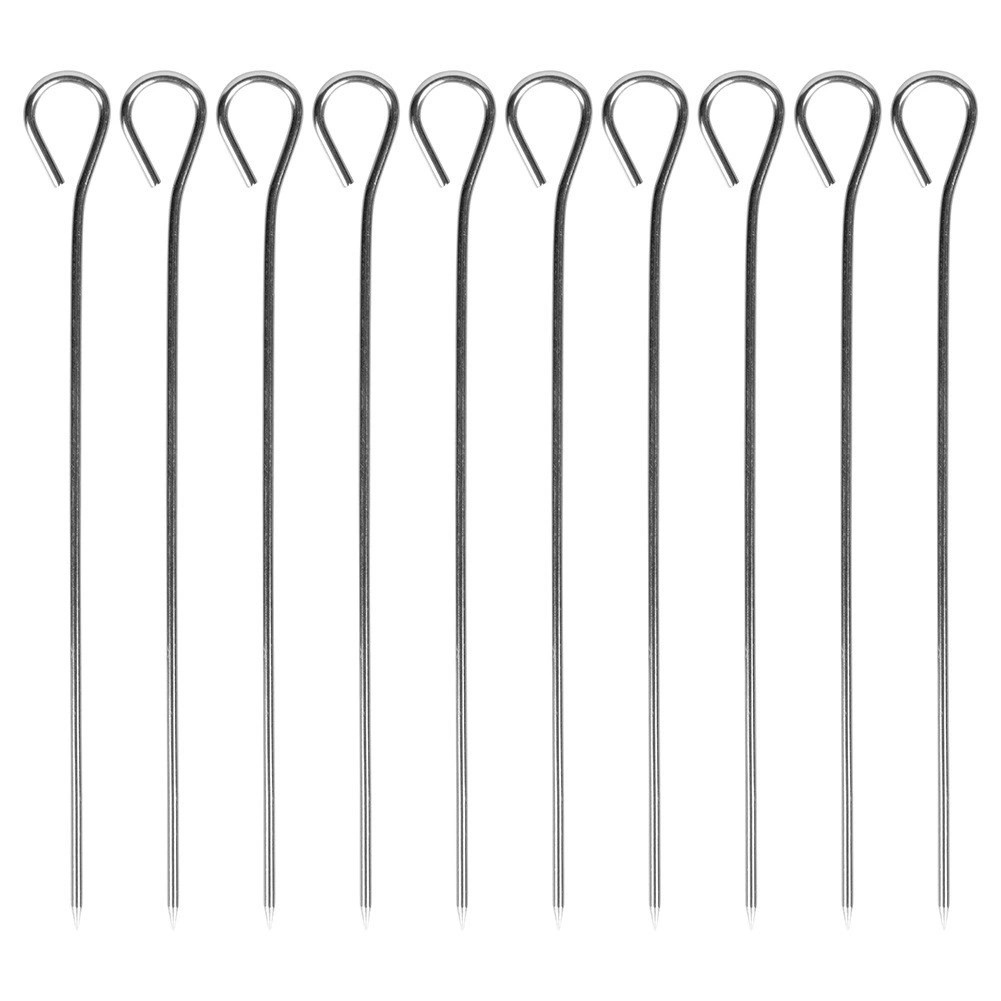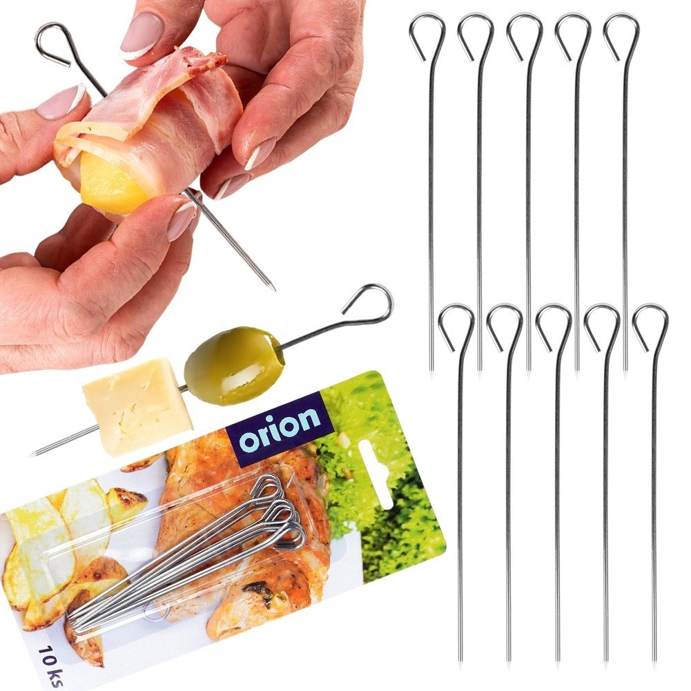 Uz ove univerzalne nerđajuće ražnjiće pripremit ćete rolade i savitke bez upotrebe konca te zamijeniti jednokratne drvene čačkalice. Oko na kraju olakšava zabadanje, vađenje i rukovanje te ujedno sprječava klizanje namirnica.