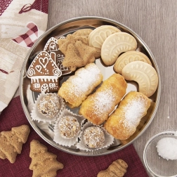Ovaj okrugli poslužavnik od nehrđajućeg čelika s poliranom površinom donosi bezvremenski izgled i praktičnu primjenu za svakodnevno posluživanje i svečane prigode. Zahvaljujući povišenom rubu posluživanje je sigurno i stabilno, a glatka površina se lako čisti.