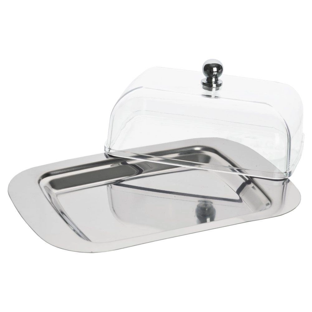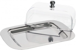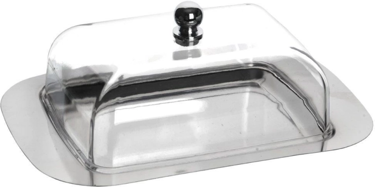Ova stilska posudica spaja izdrživu inox podlogu s prozirnim kupolastim poklopcem koji štiti maslac od prašine i mirisa iz hladnjaka, a istodobno omogućuje trenutan pregled sadržaja. Zahvaljujući bezvremenskom dizajnu elegantno će upotpuniti moderno i rustikalno postavljanje stola.