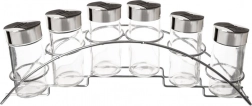 Zakrivljeni metalni stalak uredno i stabilno drži sve staklenke, tako da često korištene začine imate uvijek lako dostupne na kuhinjskoj radnoj plohi.