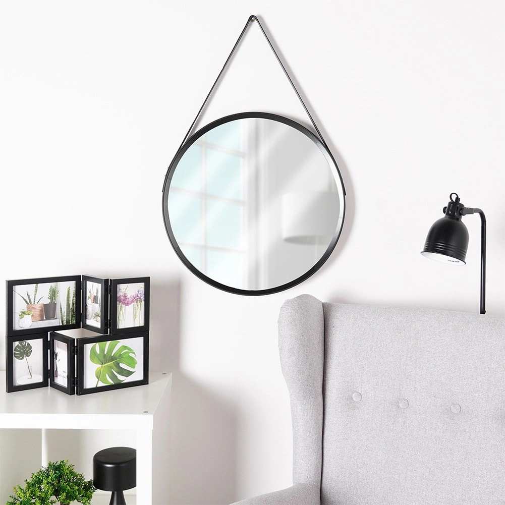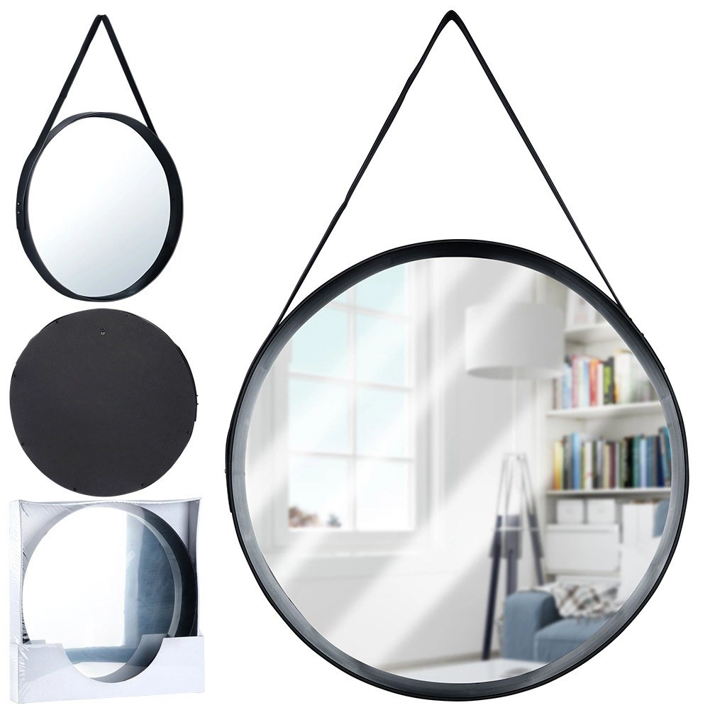 Okruglo ogledalo u industrijskom stilu oduševljava minimalističkim dizajnom i praktičnim vješanjem. Crni okvir od kvalitetnog materijala i čvrst remen daju ogledalu moderan izgled koji pristaje stanovima, uredima, kozmetičkim salonima i restoranima. Zahvaljujući refleksiji svjetla, prostor vizualno povećava i prosvjetljuje.