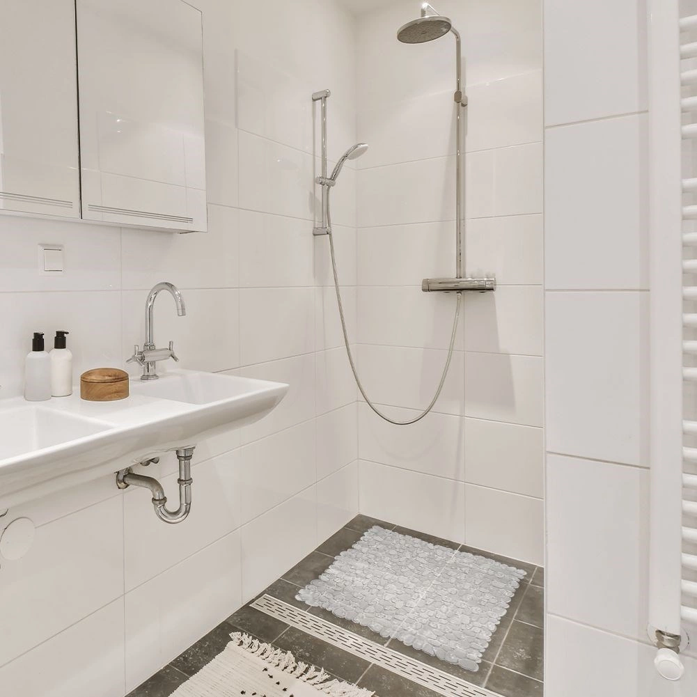 Ova kvadratna kupaonska podloga s finom teksturom i gustom mrežom vakuumskih čepova pruža pouzdanu zaštitu od klizanja u tuš-kabini, plitkom tušu i kadi. Zahvaljujući elastičnom i izdržljivom materijalu ugodno ublažava korak i štiti stopala od hladnih pločica.