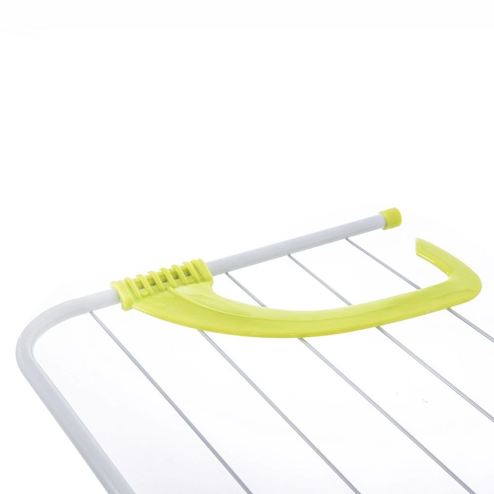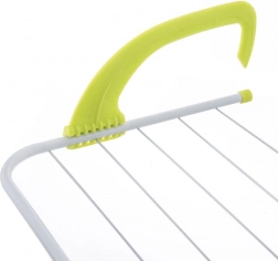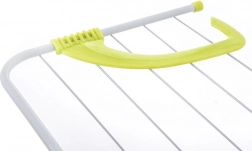 Konstrukcija od lakiranog metala bijele boje i izdržljivih plastičnih elemenata zelene boje pruža stabilnost, nosivost i dug vijek trajanja. Sklopiva krakova omogućuju brzo sklapanje i spremanje u ormar ili ladicu kada sušilica nije potrebna. Ugradnja je intuitivna i ne zahtijeva alat.