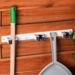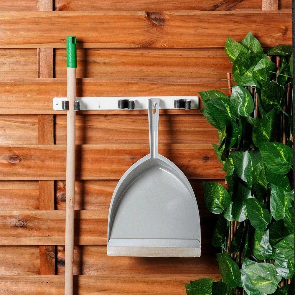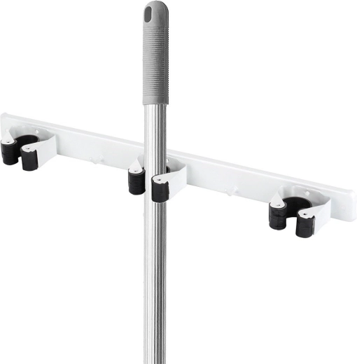 Drži do tri alata s drškom i istovremeno nudi dvije kuke za dodatke – krpe, metlicu ili lopaticu.