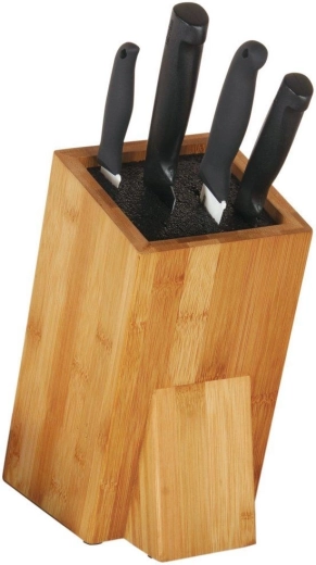 Praktičan i stilski dodatak za radnu plohu koji drži noževe, škare i drugi pribor uvijek pri ruci i pregledno organizirane. Prirodni bambus ističe se izdržljivošću i bezvremenskim izgledom, pa se odlično uklapa u moderne i klasične interijere. Univerzalni umetak s gustim plastičnim vlaknom sigurno fiksira oštrice različitih duljina i širina.