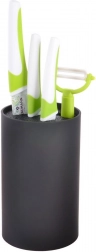 Kompaktan cilindrični oblik u crnoj boji štedi prostor na radnoj plohi, drži alate uspravno i odlično se uklapa u moderne i klasične kuhinje.
