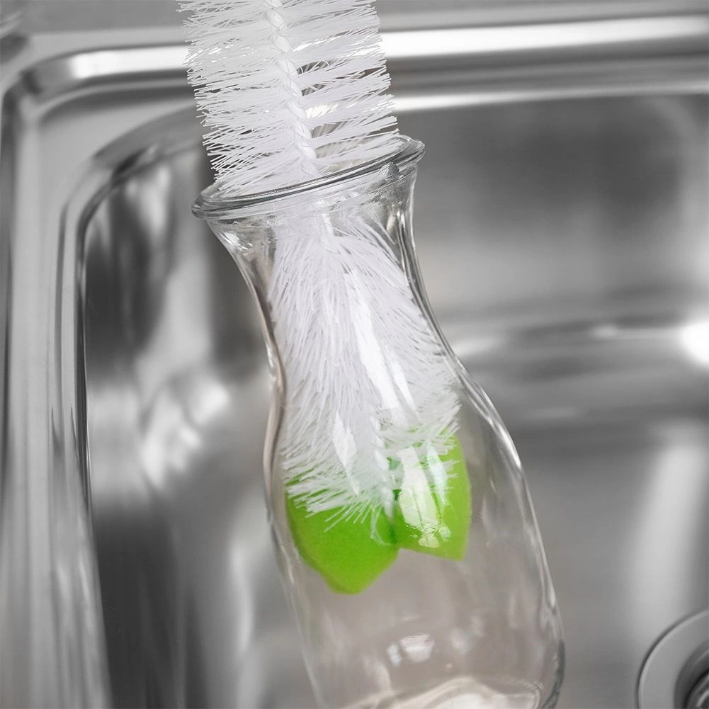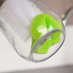Ova duga i uska četka za boce dizajnirana je da se lako probije kroz uska grla i u duboke posude. Guste čekinje učinkovito uklanjaju naslage i nečistoće sa stijenki, dok mekani spužvasti vrh nježno dočisti rubove i dno bez ogrebotina.