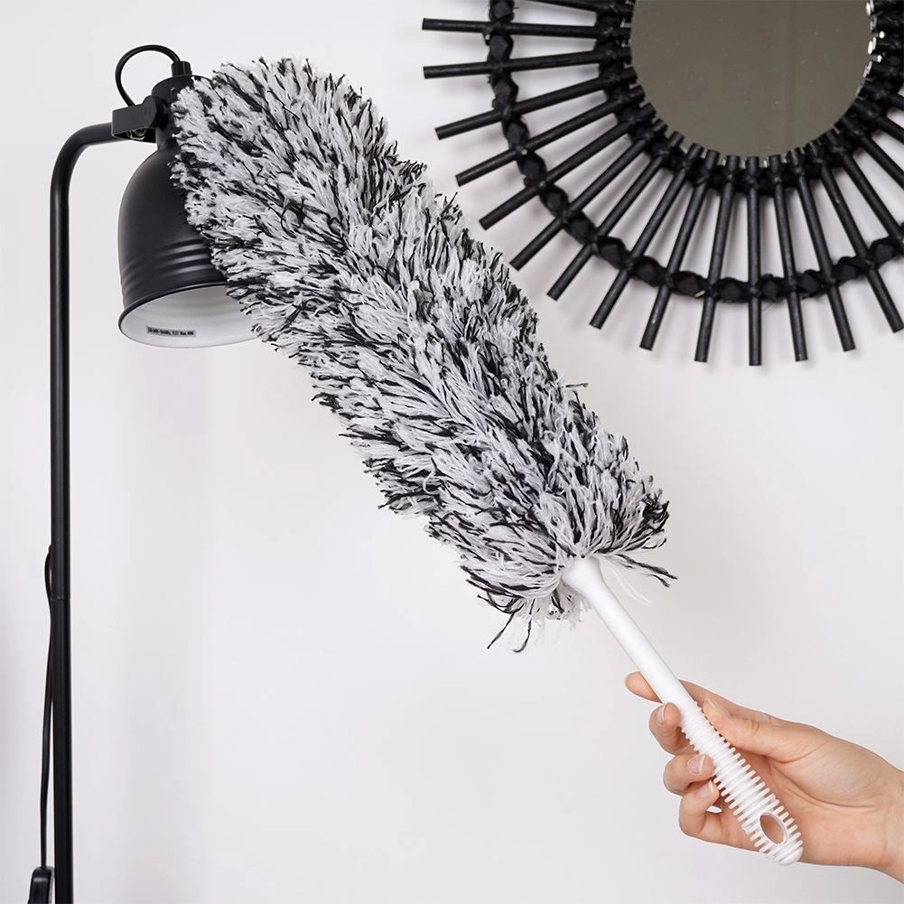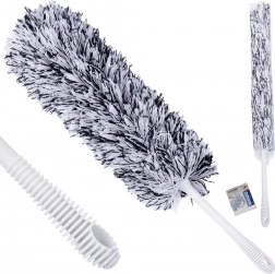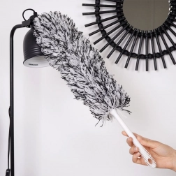 Ova antistatička krpa za prašinu idealan je pomoćnik za brzo i nježno uklanjanje prašine s televizora, namještaja, lampi, roleta i prozorskih klupčica. Gusta mikrovlakna u sivo-bijeloj izvedbi učinkovito hvataju prašinu i alergene bez podizanja nečistoća u zrak. Zahvaljujući niskoj težini i dugom dosegu (55 cm s drškom) očistit ćete i uske proreze te više police.