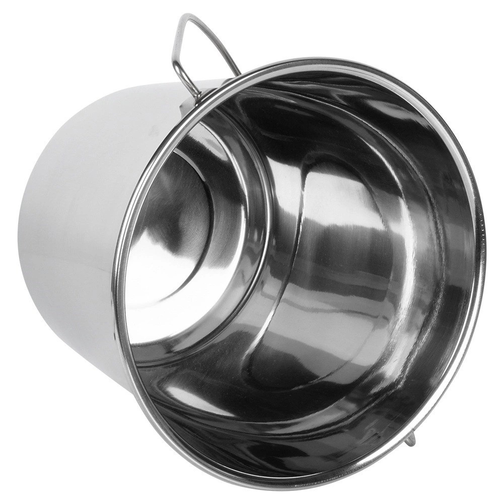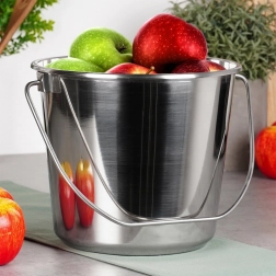 Nerđava posuda 5 l pouzdan je pomoćnik za prenošenje i skladištenje vode, mlijeka ili drugih sirovina. Prikladna je za kontakt s hranom, lako se čisti i zahvaljujući izdržljivom nehrđajućem čeliku traje dugi niz godina. Čvrsta ručka omogućuje udobno prenošenje i vješanje.