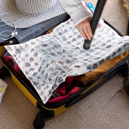 Vakuumska vreća idealna je za sezonsko spremanje odjeće, posteljine, pokrivača i plišanih igračaka. Izrađena je od izdržljive folije s lavandinim uzorkom i omogućuje brzo isisavanje zraka pomoću standardnog usisavača ili ručne pumpe. Smanjenjem volumena dobivate više prostora u ormarima, komodama i koferima.