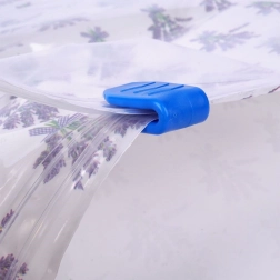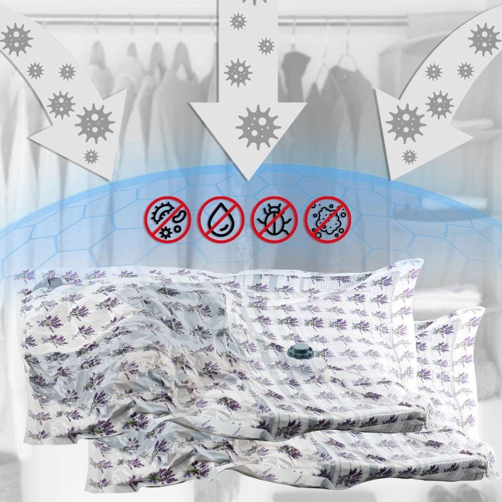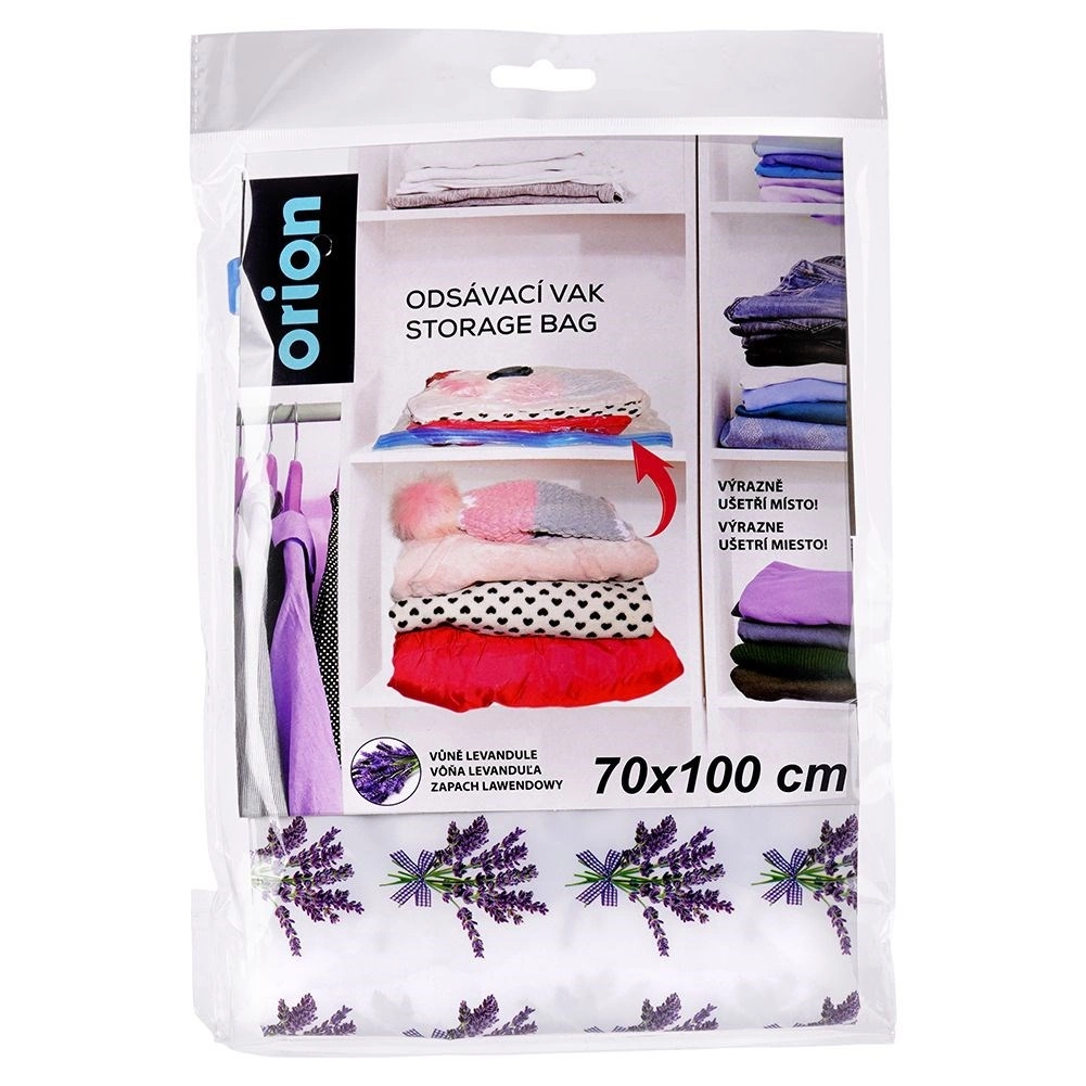 Vakuumska vreća odlično je rješenje za sezonsku odjeću, posteljinu i plišane igračke. Čvrsta prozirna folija s lavandinim motivom i blagim mirisom pruža dugotrajnu zaštitu od prašine, prljavštine, vlage i štetnika. Uklanjanjem suvišnog zraka dobivate pregledan i kompaktan prostor za pohranu.