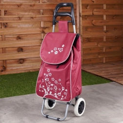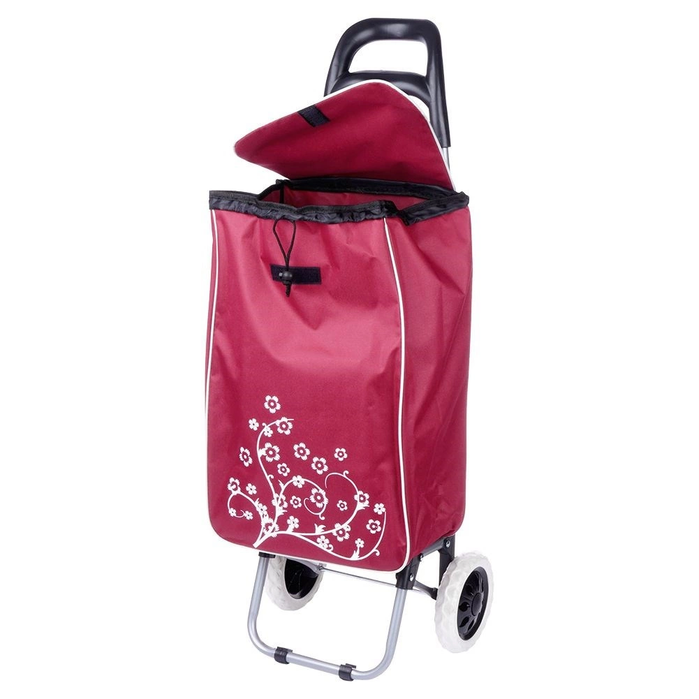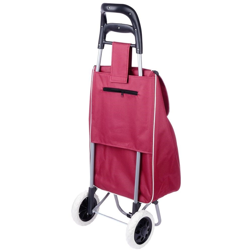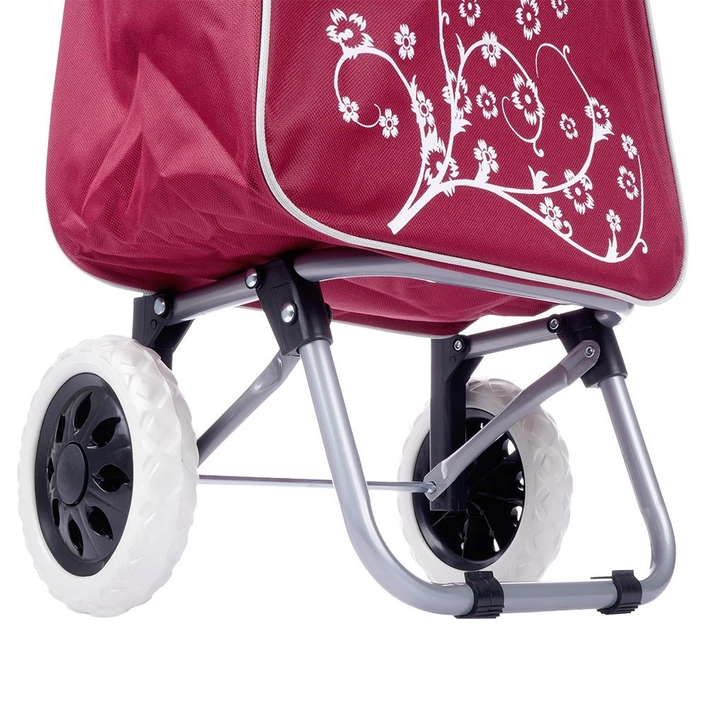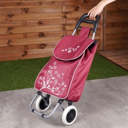 Shopping kolica s prostranom torbom od 30 l u bordo izvedbi idealan su izbor za udobnu kupnju bez nošenja teških vrećica u ruci. Lagani, a pritom stabilni okvir s dva velika kotača omogućuje tih i ujednačen hod i po neravnom terenu. Torba s uzicom za stezanje i preklopnim poklopcem sigurno štiti sadržaj, a stražnji džep s patentnim zatvaračem praktičan je za ključeve, novčanik ili telefon.