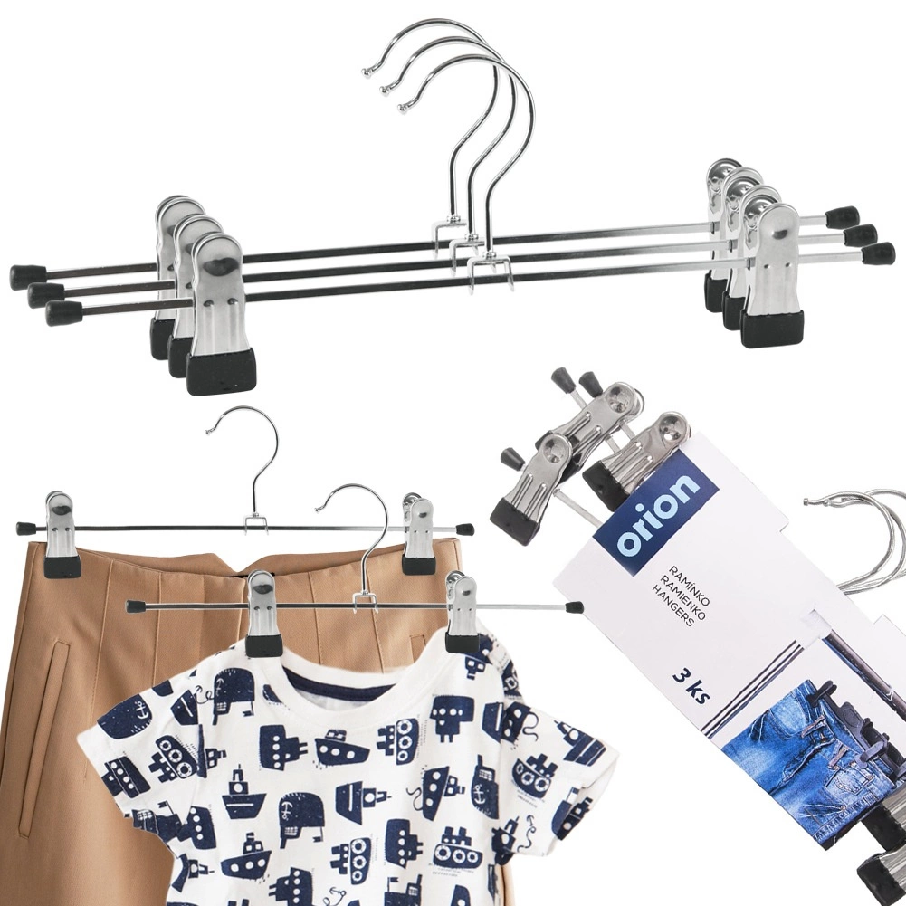 Vješalice pomažu štedjeti prostor, drže odjeću na mjestu i sprječavaju klizanje. Prikladne su za traperice, elegantne hlače, suknje (mini i duge), kratke hlače, kombinezone i dječju odjeću. Originalan proizvod robne marke ORION, proizveden u skladu s europskim standardima.