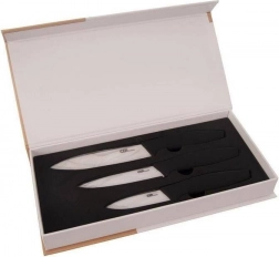 Ovaj univerzalni set sadrži mali, srednji i veliki nož za precizno rezanje, porcioniranje i guljenje. Puna keramička oštrica omogućuje gladak rez, namirnice se manje lijepe i bolje zadržavaju vitamine i nutritivne vrijednosti. Zahvaljujući ergonomskim drškama od kvalitetne plastike u crnoj boji, noževi udobno leže u ruci i ne kližu.