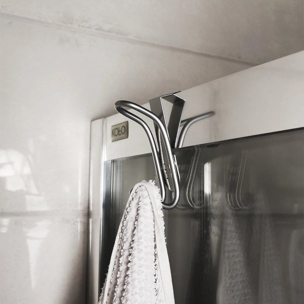 Maksimizirajte prostor bez bušenja. Dvostruke kuke od nehrđajućeg čelika jednostavno objesite na gornji rub vrata, vratnica ormara ili ladica. Izdržljiv nehrđajući čelik u elegantnoj srebrnoj izvedbi idealan je za vlažnu kupaonsku okolinu i svakodnevno opterećenje u kuhinji.