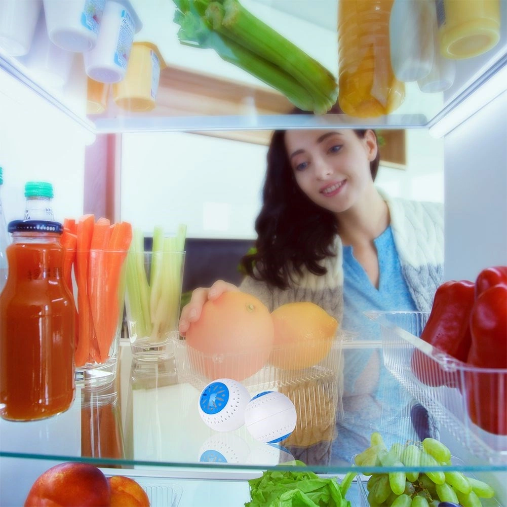 Kuglasta forma promjera 5 cm štedi prostor. Apsorbere možete slobodno položiti na policu, u vrata ili u ladicu za povrće.