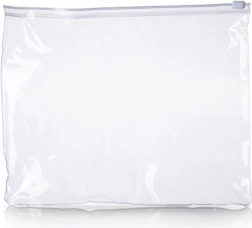 Prozirna torbica s patentnim zatvaračem drži sve bočice i posudice na okupu, uredno i spremno za ručnu prtljagu.