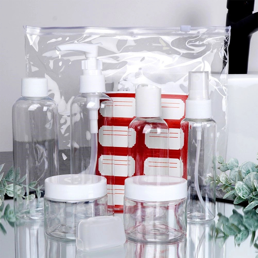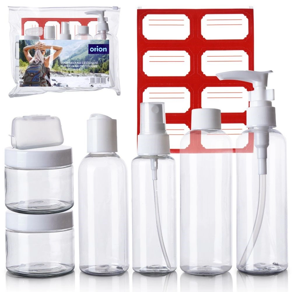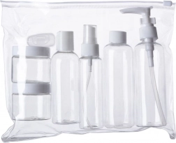 Izdržljive plastične bočice i posudice lako se čiste i mogu se višekratno puniti. Iskoristite ih za šampon, gel za tuširanje, kremu, losion za tijelo i dezinfekciju. Priložene naljepnice omogućuju brzo označavanje sadržaja, dok torbica s patentnim zatvaračem sve drži na okupu i štiti od prolijevanja.