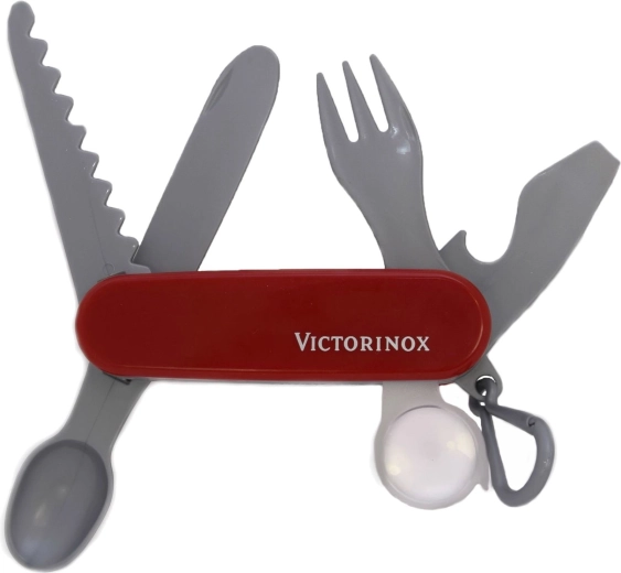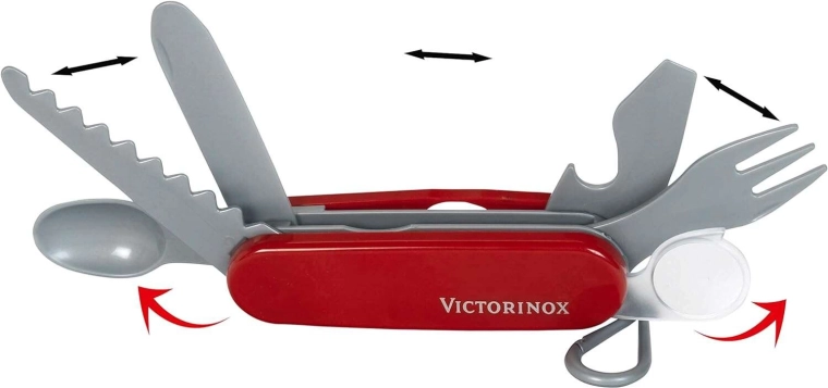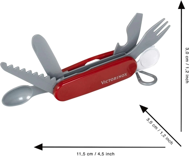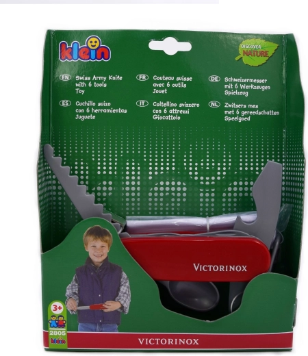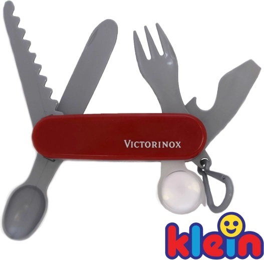 Dječji džepni nož VICTORINOX od KLEIN je vjerna, ali u potpunosti sigurna imitacija legendarnog švicarskog noža. Zahvaljujući preciznoj izradi, crvenoj dršci s logom i praktičnom karabineru mali ga avanturisti mogu pričvrstiti primjerice na pojas i imati ga uvijek pri ruci.