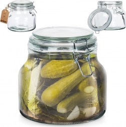 Praktična staklena tegla zapremnine 1,85 l s čvrstim kopčastim zatvaranjem idealna je za svakodnevnu upotrebu u kuhinji. Zahvaljujući gumenoj brtvi, poklopac je potpuno nepropustan, pa hrana ostaje dulje svježa, mirisna i zaštićena od vlage. Tegla od kvalitetnog debelog stakla izvrsna je za kavu, tjesteninu, orašaste plodove, šećer i sušene gljive, a ujedno je pogodna i za mariniranje i fermentaciju povrća te domaće zimnice.