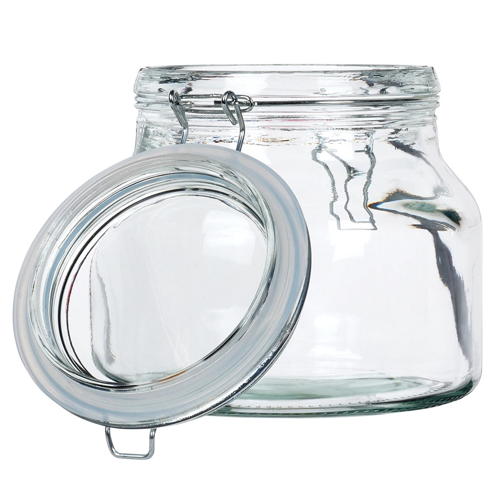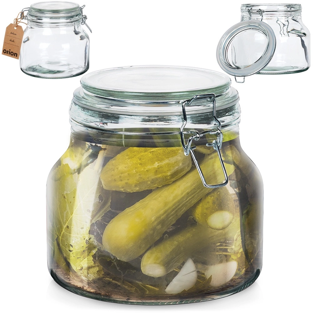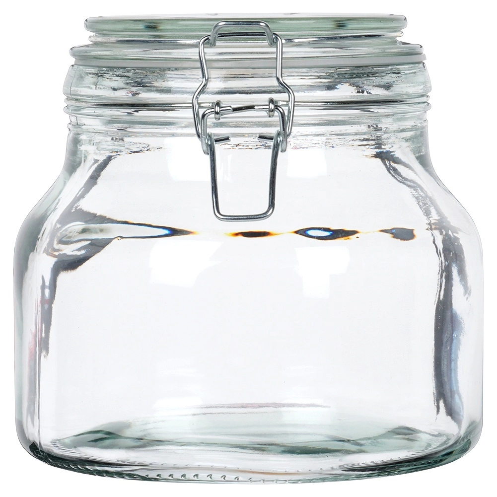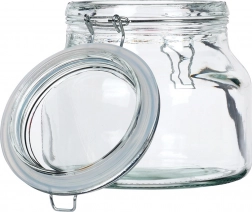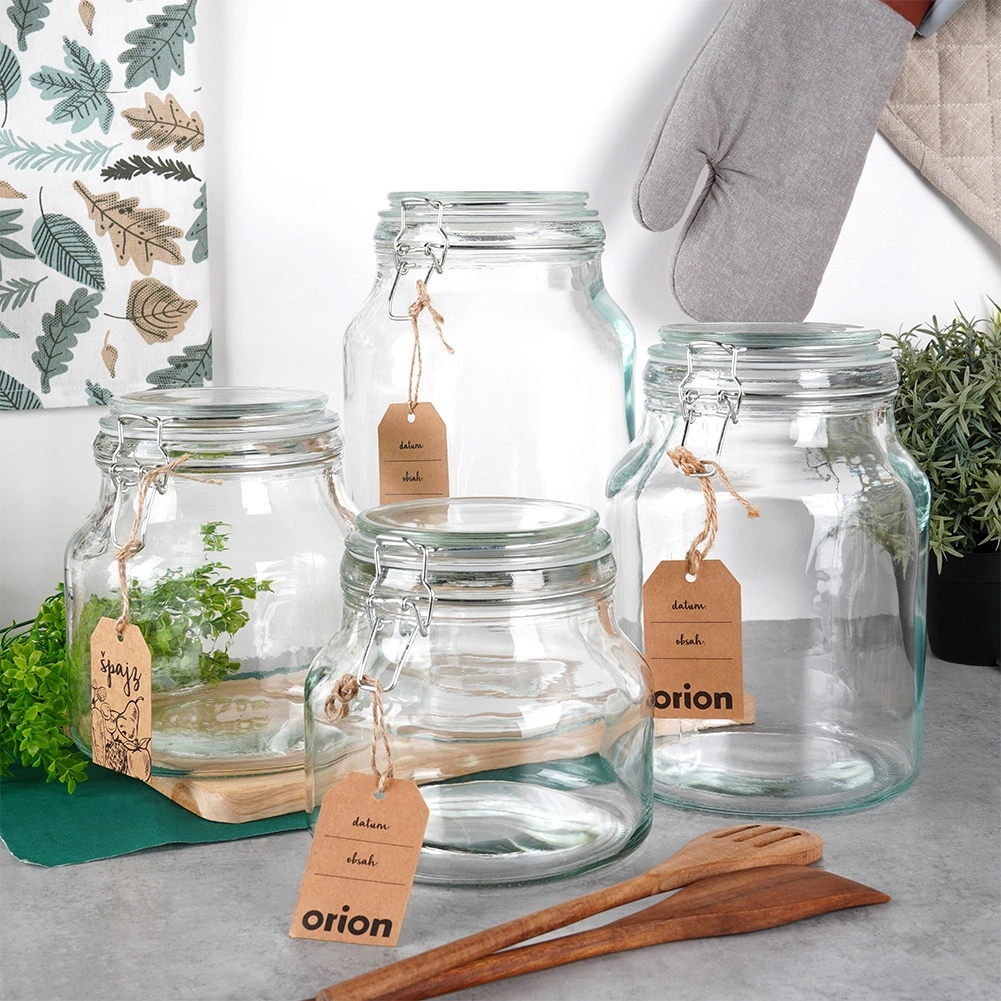 Debelo staklo sa širokim grlom lako se puni i čisti te je pogodno za skladištenje suhih namirnica i zimnice.