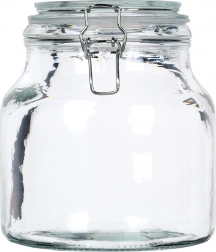 Staklena tegla s praktičnim kopčom i kvalitetnom bijelom brtvom osigurava maksimalnu svježinu vaših namirnica. Zapremina 2,4 l, promjer 16 cm i visina 18 cm pružaju dovoljno prostora za suhe i tekuće/ mokre namirnice. Robusno staklo i izdržljiv metalni mehanizam jamče dug vijek trajanja i sigurno zatvaranje.