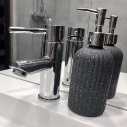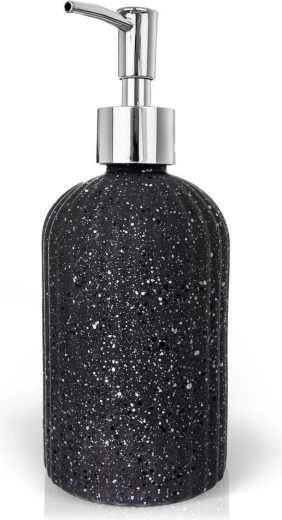 Stilski dozator za tekući sapun ili sredstvo za pranje posuđa ističe se kvalitetnim staklom u tamnosivoj nijansi s mramornom strukturom. Metalik sjajna pumpica daje dodatku premium izgled i osigurava udobno i precizno doziranje. Dozator se uklapa u moderne, klasične, loft i industrijske interijere.