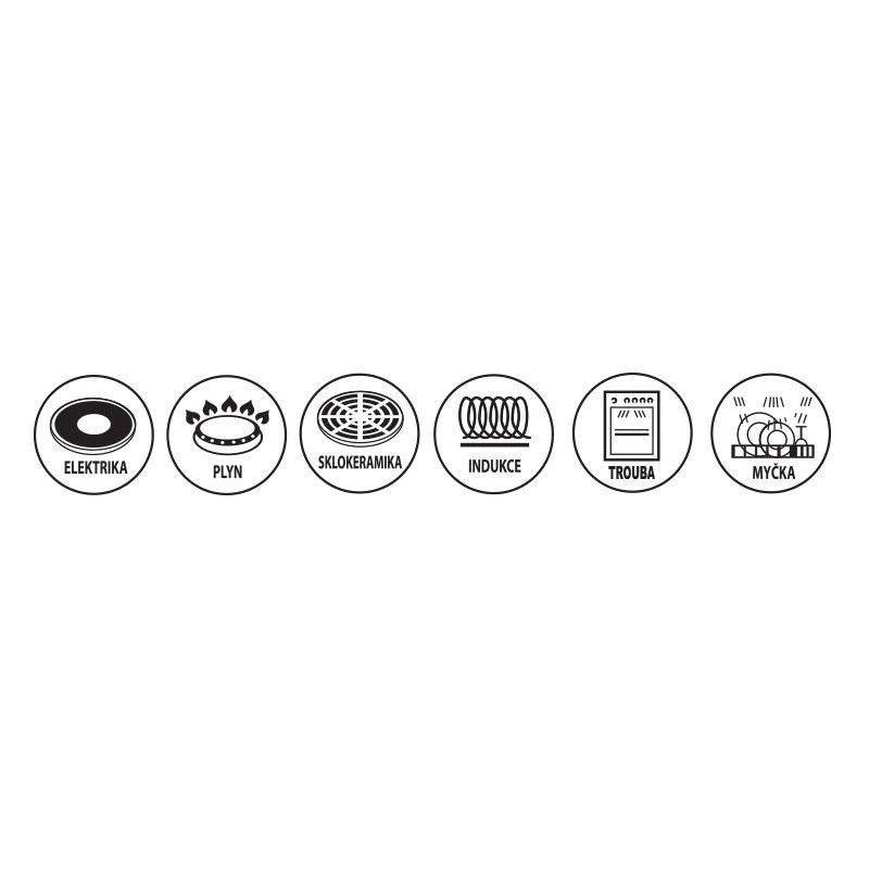 - Univerzalna uporaba: plin, struja, staklokeramika, halogen, indukcija, pećnica.