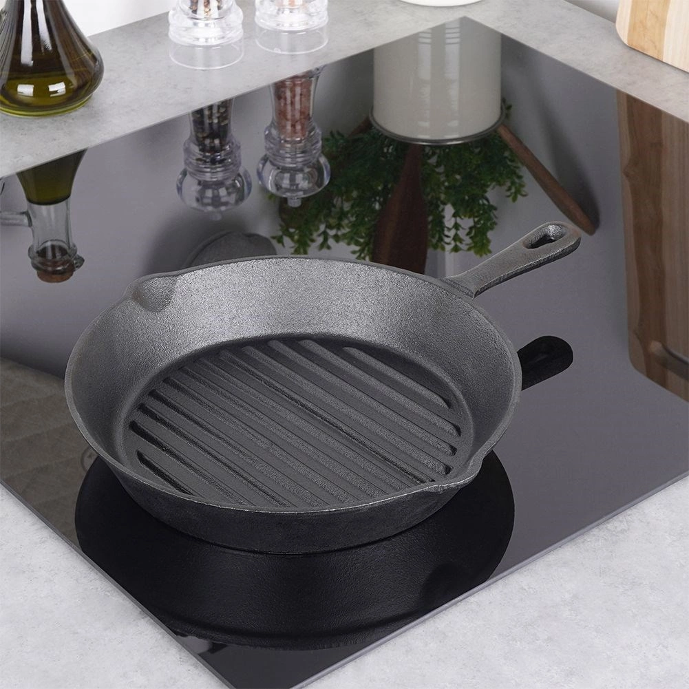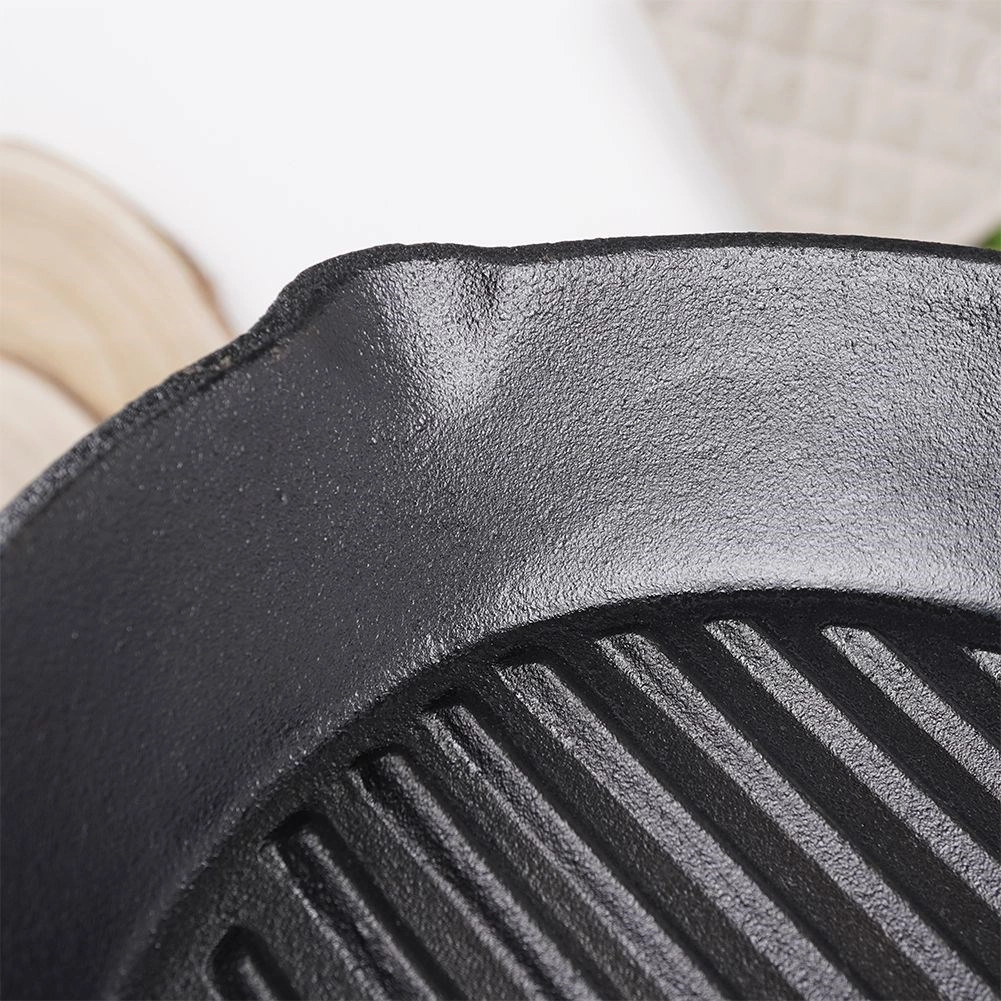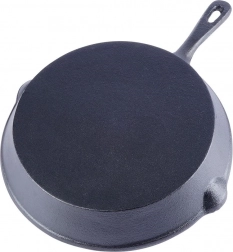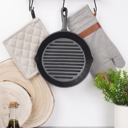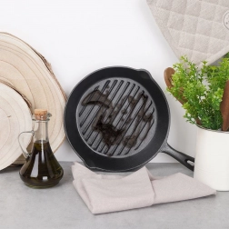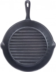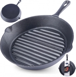 Robusna ljevena grill tava promjera 24 cm za savršeno zapečene odreske, povrće i krumpire. Zahvaljujući masivnoj konstrukciji odlično akumulira toplinu, stvara izražene rešetkaste tragove i prikladna je za sve vrste štednjaka, uključujući indukciju, kao i za pećnicu. Dvostruki izljevci olakšavaju izlijevanje sokova, visoka otpornost na toplinu osigurava dug vijek trajanja, a univerzalnu primjenu cijenit ćete kod kuće, na roštilju ili uz logorsku vatru.