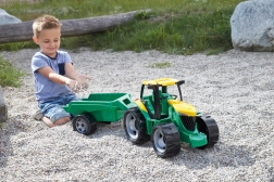 Traktor je izrađen od visokokvalitetne plastike koja odolijeva svakodnevnoj upotrebi i vremenskim uvjetima. Prikolica omogućuje prijevoz malih predmeta, što razvija dječju maštu i motoriku. Zahvaljujući visokoj nosivosti, igračka je stabilna i sigurna.