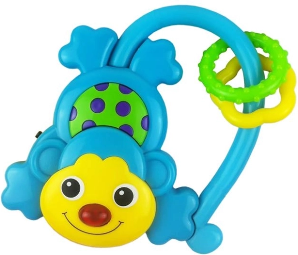 Dječja zvečka Baby Mix u obliku simpatičnog majmunčića spaja igru i razvoj vještina. Pritiskom na gumb zvečka svira melodije i svijetli, prirodno stimulirajući vid i sluh. Šareni elementi, ogledalce i teksturirane grickalice donose bebi zabavu i olakšanje pri nicanju zubića.