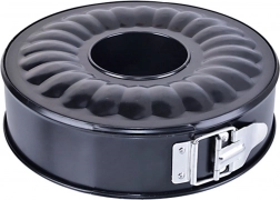 Čvrsta metalna izvedba u crnoj boji otporna je na visoke temperature do 200 °C i sigurna za kontakt s hranom. Kalup je idealan za biskvitna, miješana i prhka tijesta, kuglof, ali i za sirove torte, žele i druge deserte. Za dug vijek trajanja preporučuje se ručno pranje i nježno rukovanje bez oštrih alata.